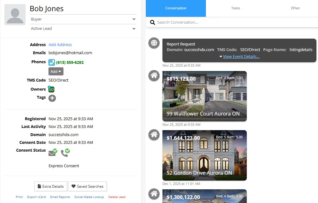 Weeks later, they return and view multiple properties in the same neighborhood — all logged inside EngageCRM.
